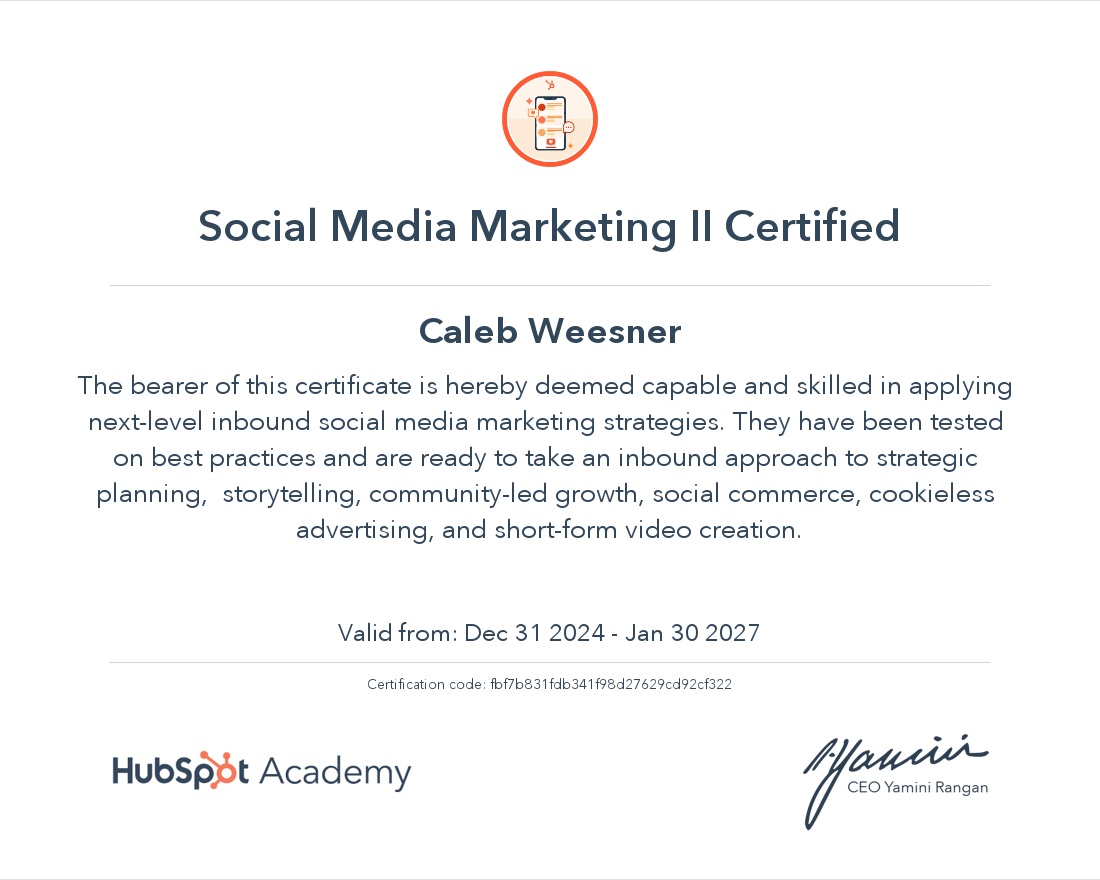 This certification has provided me with the knowledge to amplify an organization’s social media presence by effectively managing and spearheading profitable campaigns - building a stronger connection with their audience.