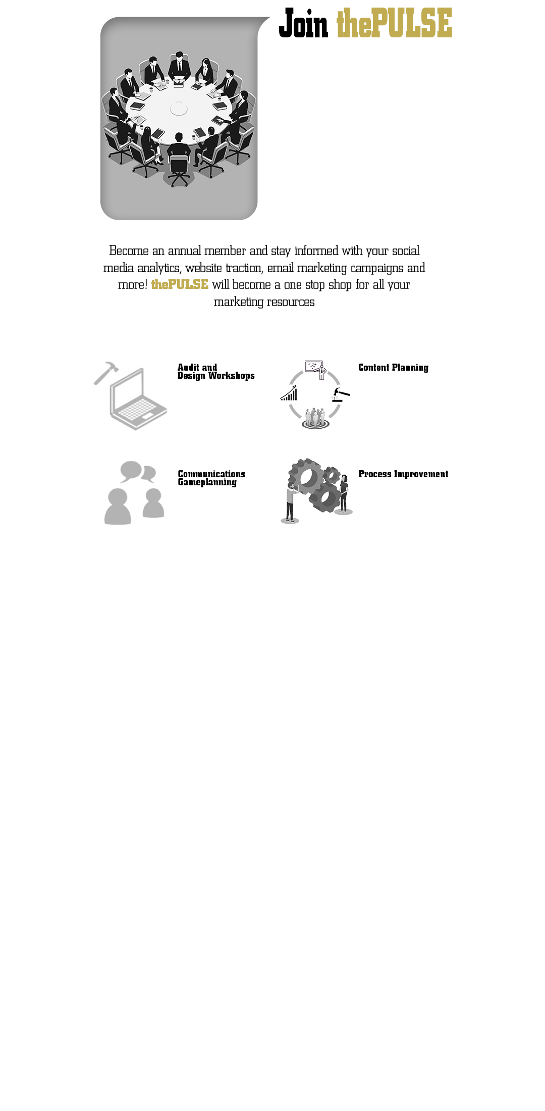 Access to newsletter and workshop announcements, bi-weekly consulting meetings to brainstorm content strategies, downloadable content and troubleshooting, marketing strategy analytics tracking... and so much more!